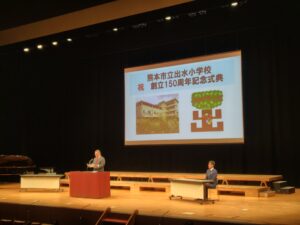 11月8日に熊本県立劇場演劇ホールで出水小学校の150周年記念式典と令和7年度学習発表会が開催されました。式典後、保護者が見守るなか1年生から6年生の学年別による音楽劇、歌ダンス、合唱、合奏があり出水小の発展と児童の成長を誓いました。
