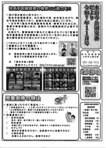 水前寺公園交番だよりを掲載します、今月11月は「児童虐待防止推進月間」でもあります。