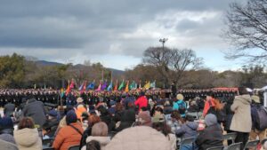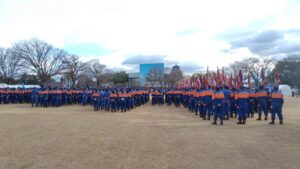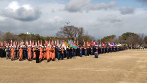 1月11日に熊本地震復興10年を節目とし熊本城二の丸広場で令和8年熊本市消防出初め式が寒風と小雪が舞う中、1,700名の消防関係者により開催されました。